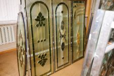 Фацетное витражное панно изготавливается методом снятия фаски, в результате получаются кусочки витража объемные, граненые.